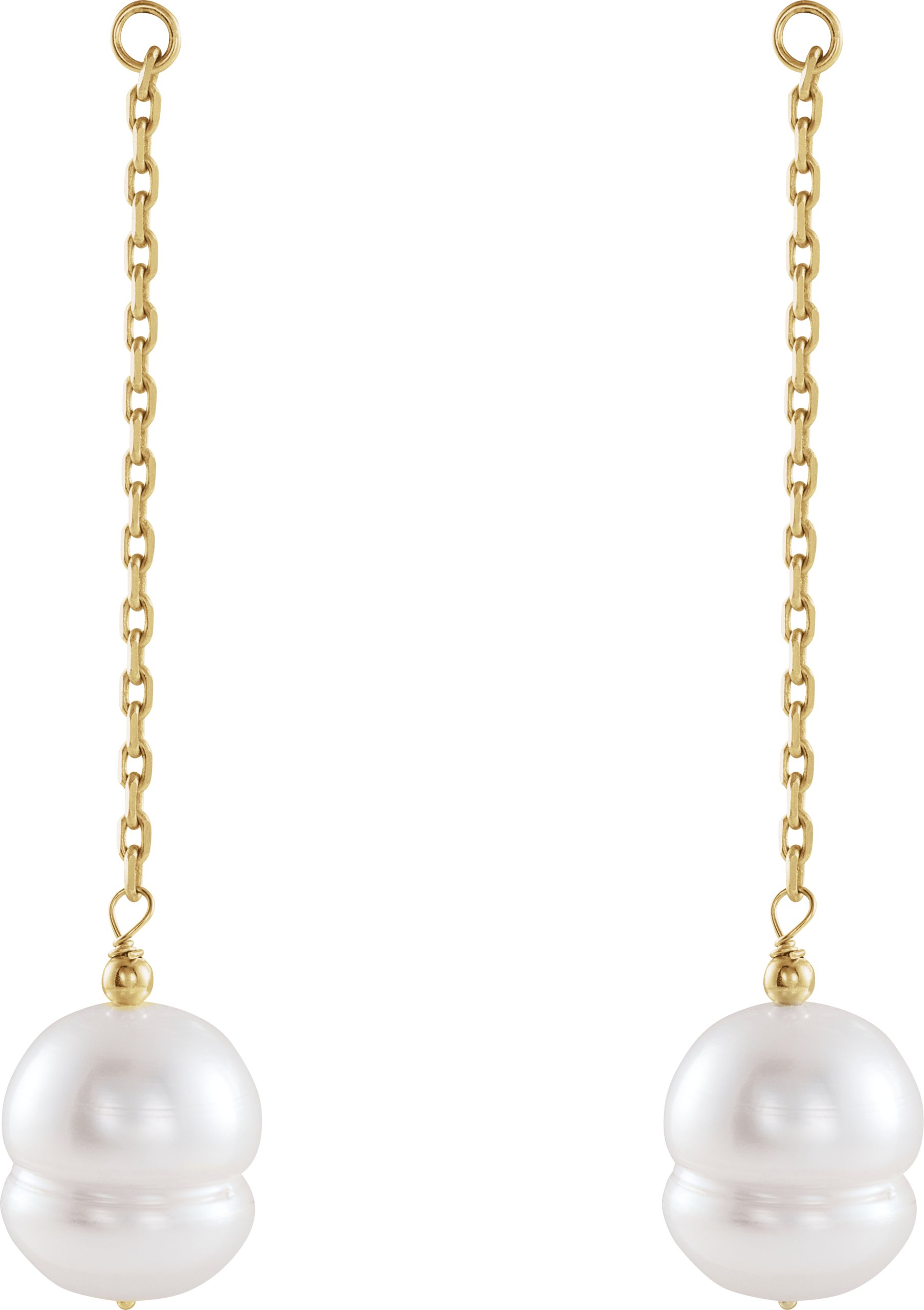 White Freshwater Circle Cultured Pearl Earring Jackets | 9-11 mm. 14K Yellow Gold.